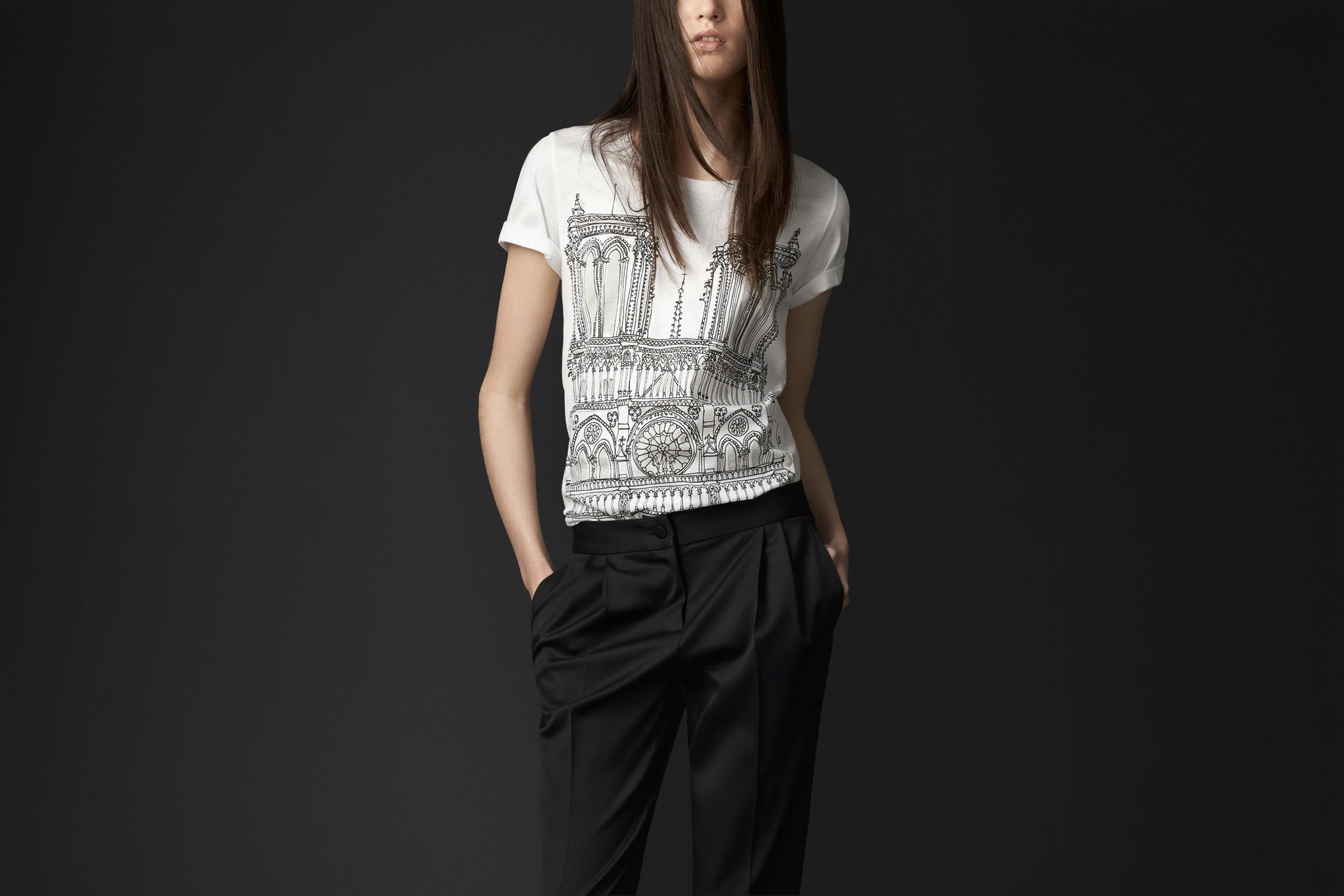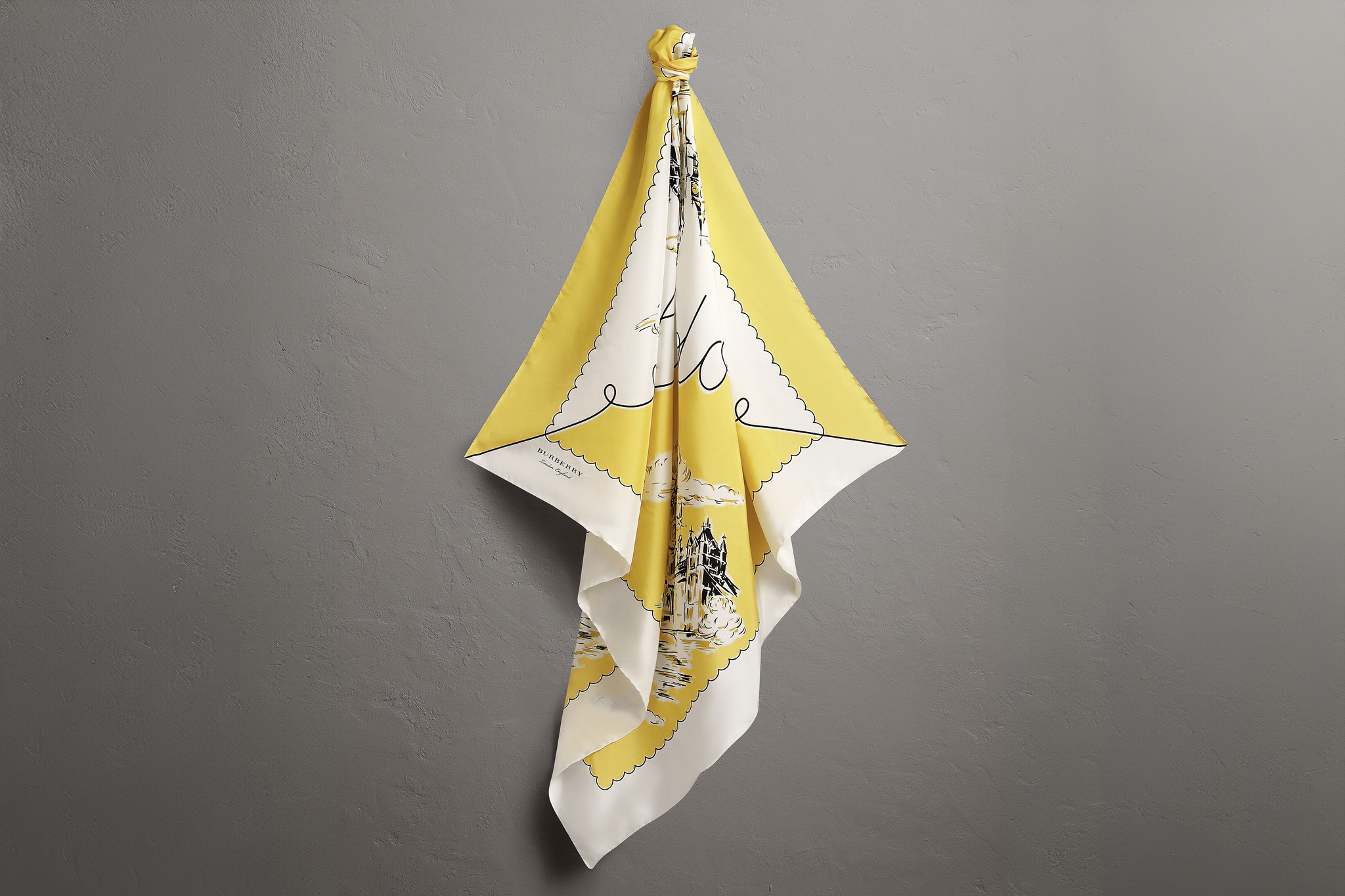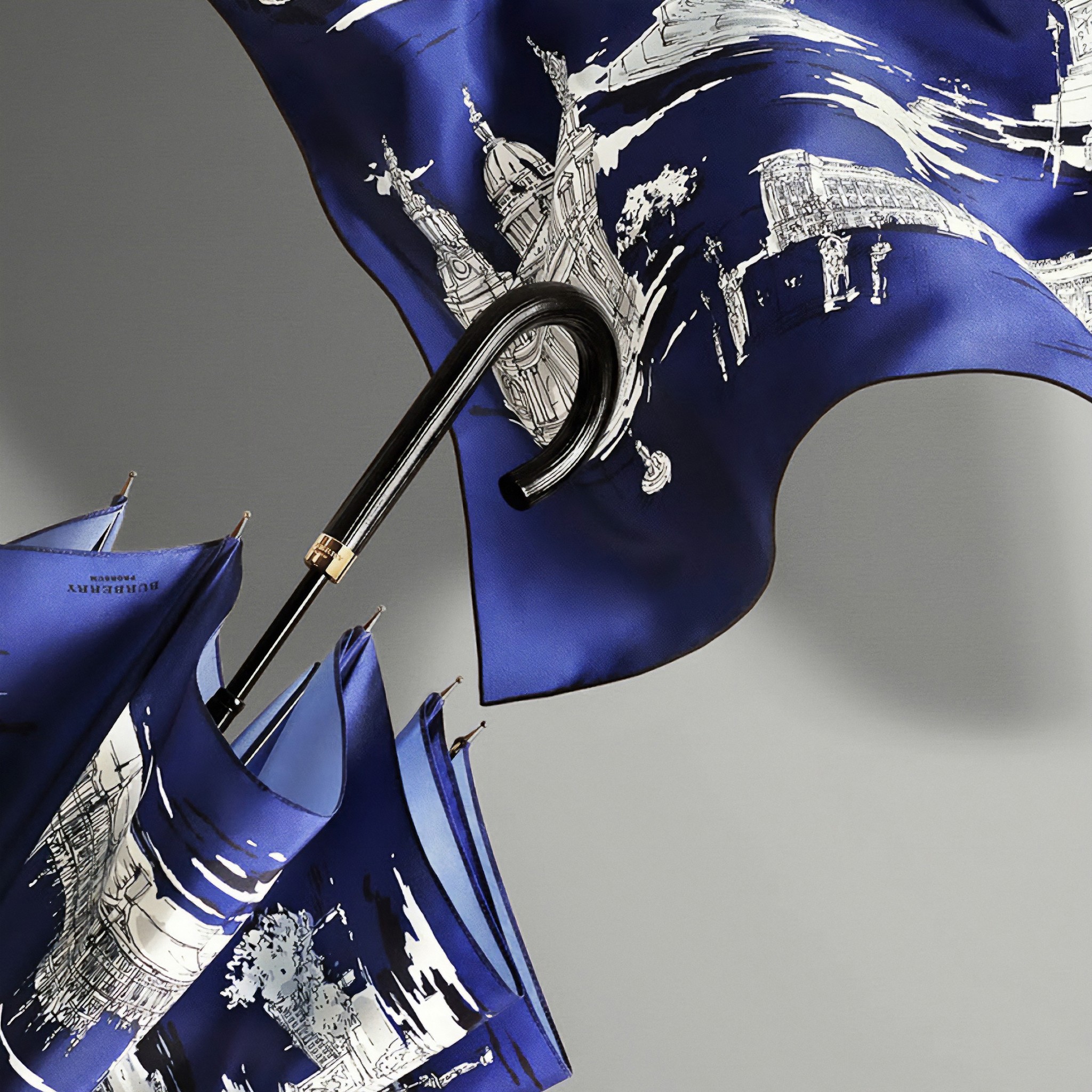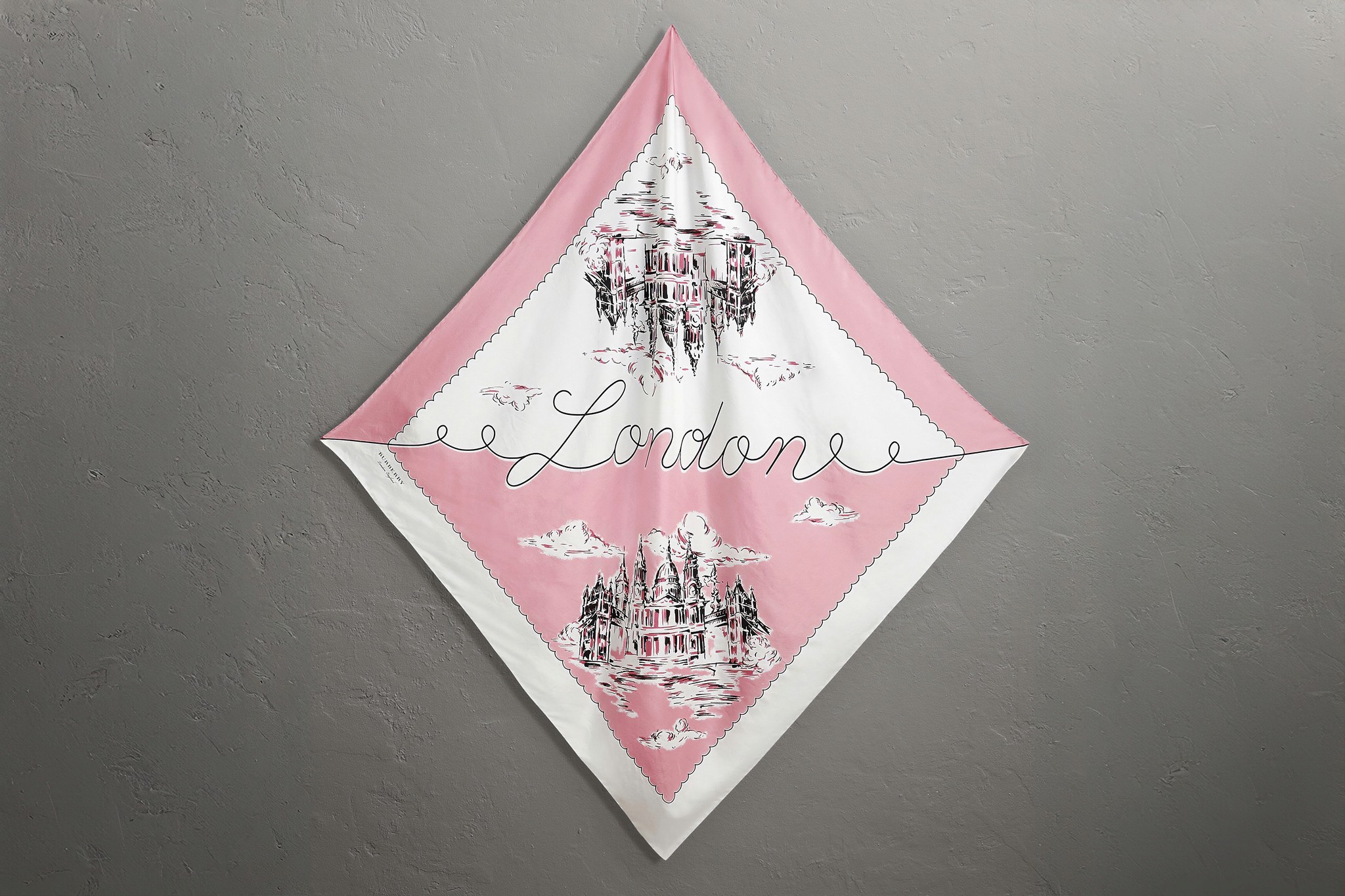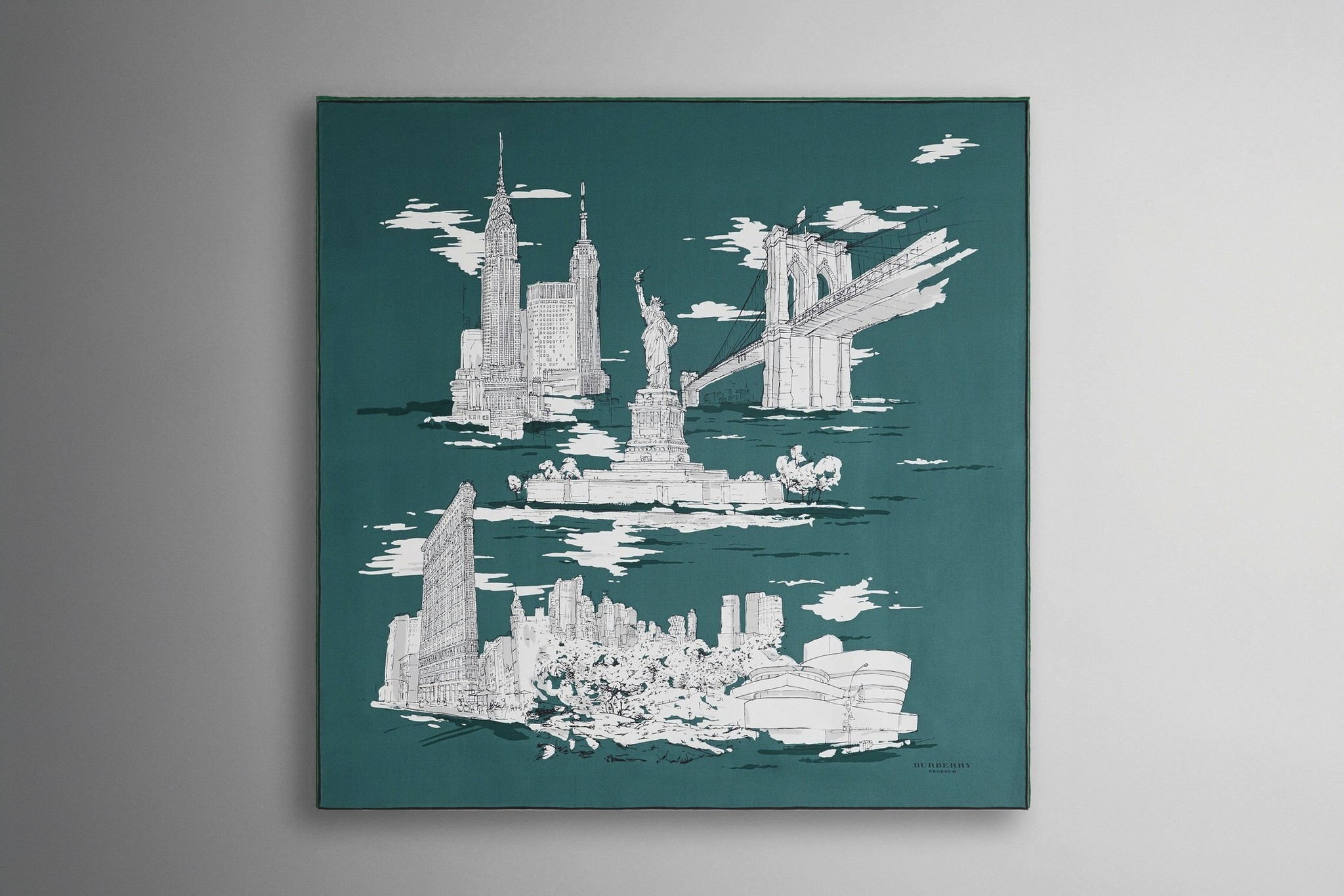 The inspiration behind the prints for the Pre-Fall and Fall 2014 collections stemmed from London landmarks and souvenirs. I designed and illustrated a series of silk squares featuring famous buildings and skylines of cities where Burberry flagship stores are located. Both collections featured pen and ink drawings of London, Paris, New York, Shanghai and more, which adorned T-shirts, umbrellas, and scarves.
